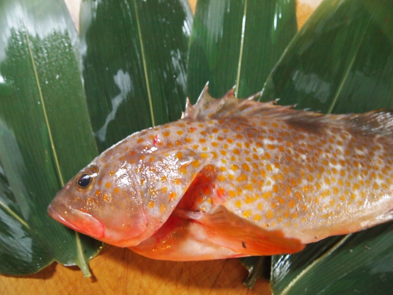 石茂魚はハタの仲間で、岩礁域に住んでおり、成長は遅く漁獲するのに難しい魚で大型の物は超高級とされています。石茂魚は夏の魚とも言われ、薄造りとして提供される事が多く夏のフグとも言われるほど美味しい魚です。