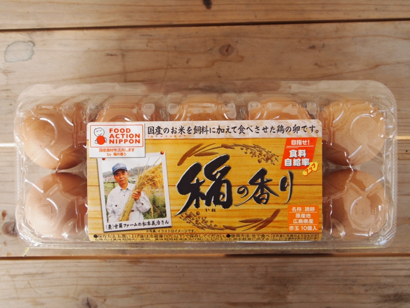 飼料原料の大半を輸入に頼っている中で、広島県産の飼料用米をエサに添加することで食料自給率向上が期待できるため、「フードアクションニッポン」推進商品として位置付けました。